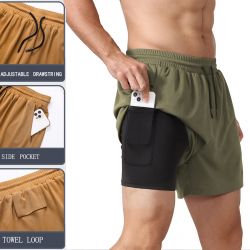 Men’s Workout Running Shorts 2 in 1 Lightweight Athletic Gym Training Shorts with Liner and Phone Pocket