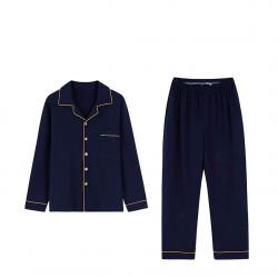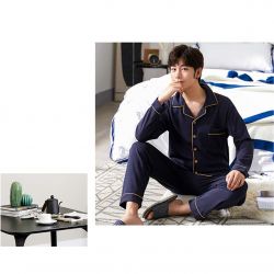 Men's Cotton Pajamas Set Button Down Sleepwear Pjs Long Sleeve Top with Pant Loungewear
