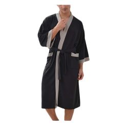 Men's Waffle Kimono Robe Cotton Spa Bathrobe Lightweight Soft Pajamas with Pockets