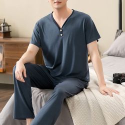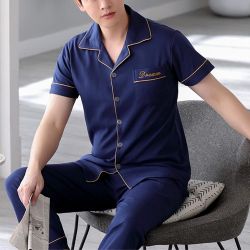 Men's pajama sets cotton Short Sleeve Sleepwear for men Button Up Sleepwear Lounge Pjs Set with Pockets