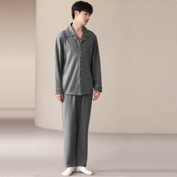Men's Cotton Pajamas Set Long Sleeve Top & Bottom Sleepwear Button Down Loose fit Sleep Pants Set Daily basis