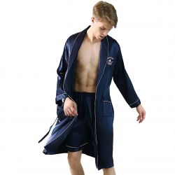 Men's Silky Satin Bathrobe Nightgown Kimono Robe Sleepwear Set with Pajamas Shorts