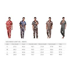 Men's Silky Satin Short Sleeve Pajamas Set Dragon Pattern Pj Sets Loungewear Button-Down Sleepwear