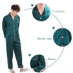 Men's Silk Satin Pajamas Set Long/Short Sleeve Button-Down Sleepwear with Front Pocket