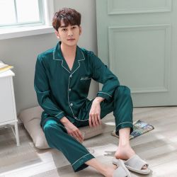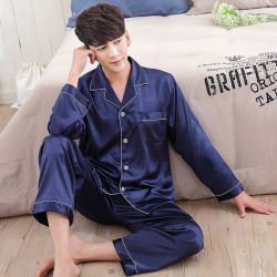 Men's Stain Silk Chinese Pajamas Set Button-Down Short/Long Sleeve Sleepwear Loungewear