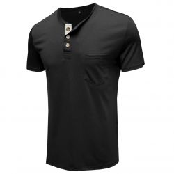 Men's Henley T-Shirts Short Sleeve Casual Slim Fit Tee Shirt with Front Pocket
