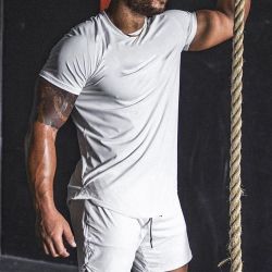 Men’s Muscle Shirts Fitness Muscle Athletic Workout T-Shirt Moisture Wicking Short Sleeve Crew Neck T-Shirt