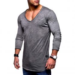 Men's Classic V-Neck Long Sleeve Bodybuilding T-Shirts