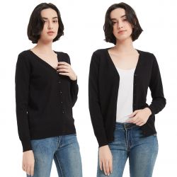 Women's Long Sleeve Soft Knit Cardigan Casual V-Neck Open Front Button Sweater Outwear