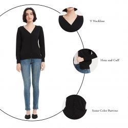 Women’s V Neck Cardigan Sweater Open Front Button Down Long Sleeve Classic Knit Cardigans Coat Top