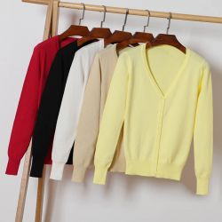 Women's Cardigan School Uniform Sweater Girls Cardigans V-Neck Long Sleeve Button Down Knit with Pockets
