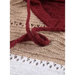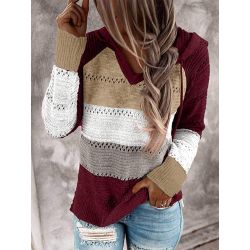 Women's Pullover Hoodie Sweaters V-Neck Color Block Autumn Sweater Casual Long Sleeve Hollow Out Knitted Tops