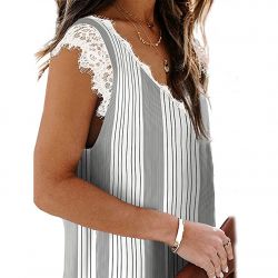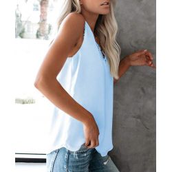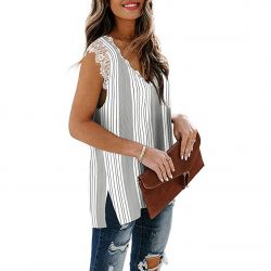 Women's V Neck Tank Tops Sexy Lace Trim Vest Summer Casual Sleeveless Loose Cami Side Split T Shirts Blouses