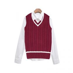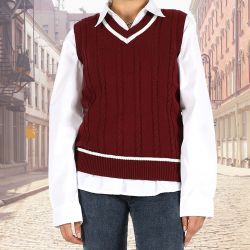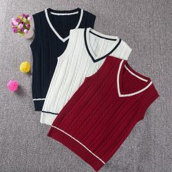 Women’s Sweater Vest V Neck JK Uniform Kint Vests Solid Classic Sleeveless Pullover Sweaters Tops